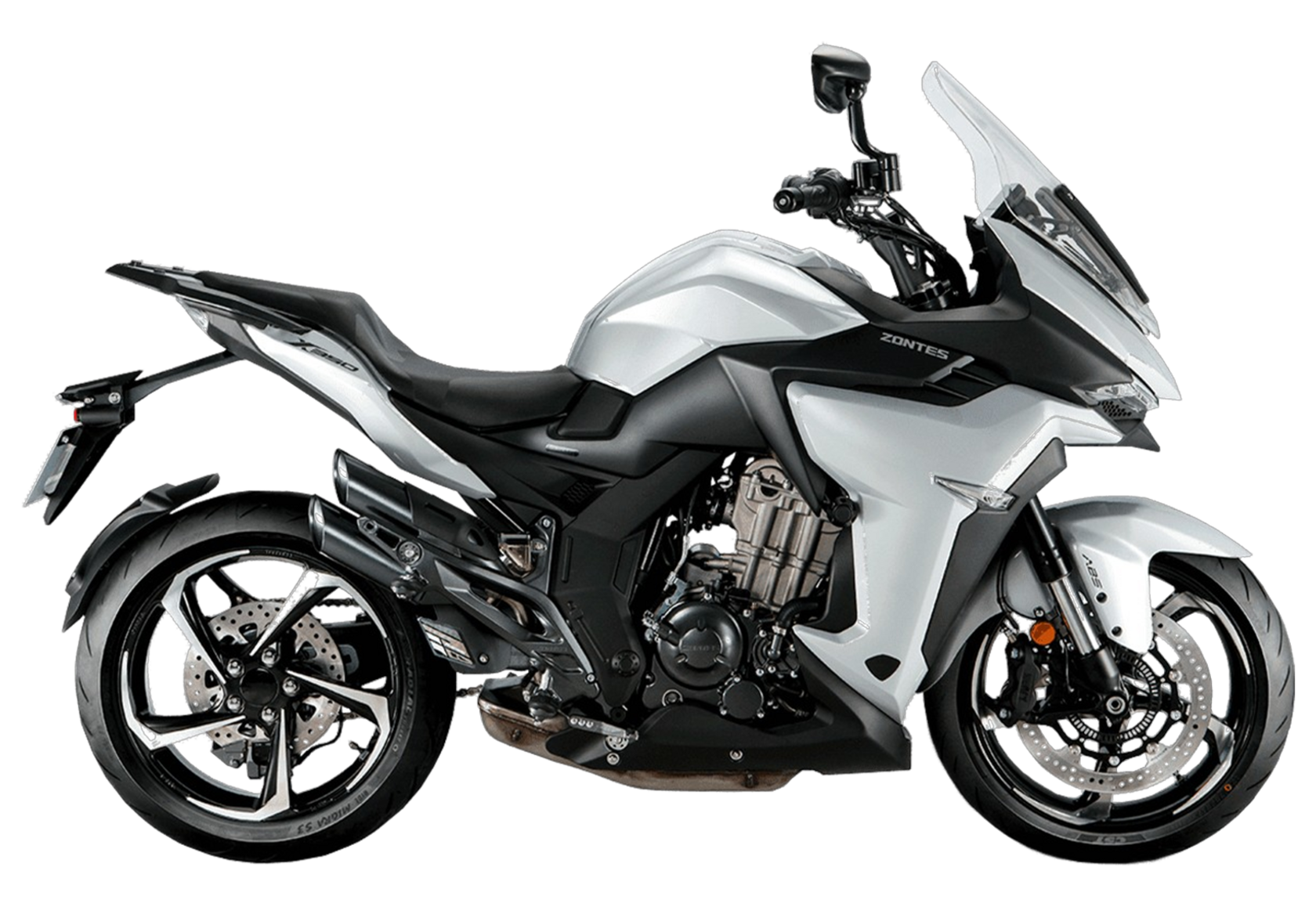 Мотоцикл ZONTES ZT350-X1 – турист со стремительным современным дизайном. Хорошо подходит как для повседневных поездок по городу, так и для покорения дальних маршрутов.Силовая установка представлена одноцилиндровым 4-тактным двигателем ZT184MP с 4 клапанами и 2 верхними распредвалами. Двигатель имеет объём 348 см³ и обеспечивает мощность в 39 л.с. Оснащён инжектором BOSCH и системой жидкостного охлаждения. Механическая коробка передач имеет 6 ступеней и схему 1-N-2-3-4-5-6. Запуск двигателя осуществляется с помощью бесключевого доступа.Ёмкость топливного бака 19 литров.Колёса представлены литыми алюминиевыми дисками диаметром 17 дюймов. На мотоцикл установлены датчики давления в шинах, показатели от которых выводятся на приборную панель. Для подвески спереди используется телескопическая вилка, сзади – моноамортизатор. Гидравлические дисковые тормоза произведены испанской компанией J.JUAN, входящей в холдинг BREMBO.Для освещения используется яркая LED-оптика, а приборная панель представлена цифровым дисплеем. Рычаги тормоза, сцепления и лапки КПП можно отрегулировать. Имеется 2 USB-порта.Габариты мотоцикла 2055х795х1330 мм. Колёсная база 1395 мм. Высота по седлу 795 мм. Вес 169 кг.