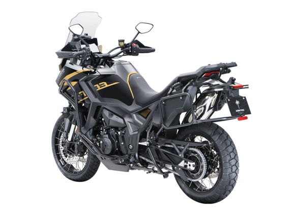 Мотоцикл ZONTES ZT703-F Tour 19/17 2025 – универсальный турэндуро, который подойдёт как для городских поездок, так и динамичных прохватов по грунту благодаря производительной подвеске. Узнайте, что такое настоящее наслаждение путешествием!Силовая установка представлена 3-цилиндровым 4-тактным двигателем объёмом 699 см³ с 4 клапанами на каждом цилиндре и 2 верхними распредвалами. Двигатель способен развивать мощность до 97,2 л.с. при 10 000 об/мин и высокий крутящий момент 76 Н·м при 7500 об/мин, что позволяет развивать большую скорость и с лёгкостью преодолевать трассы со сложным рельефом. Соотношение диаметра цилиндра и хода поршня 70х60,6 мм. Степень сжатия 13:1. Может работать в 2 режимах: ECO и SPORT. Запуск двигателя осуществляется с помощью бесключевого доступа. Установлена алюминиевая защита.Жидкостная система охлаждения эффективно поддерживает оптимальную температуру двигателя. На мотоцикл установлена 6-ступенчатая коробка передач, оснащённая квик-шифтером для переключения передач без использования рычага сцепления.В конструкции мотоцикла используется пространственная алюминиевая рама. Спереди и по бокам картера установлена металлическая защита двигателя. Выхлопная система оснащена стильным глушителем. Ёмкость топливного бака 22 литра.На мотоцикл установлены спицованные бескамерные колёса диаметром 19 дюймов спереди и 17 дюймов сзади. Подвеска изготовлена итальянским производителем MARZOCCHI. Спереди используется телескопическая вилка перевёрнутого типа с ходом 180 мм. Сзади установлен моноамортизатор с ходом 180 мм. Оба компонента регулируются.Дисковые гидравлические тормоза произведены компанией J.JUAN, входящей в холдинг BREMBO. Спереди используется двойной диск 310 мм с 4-поршневыми суппортами, а на заднем колесе расположен диск 260 мм с однопоршневым суппортом. Мотоцикл также оснащён 2-канальной ABS-системой с возможностью отключения, а также настраиваемой противобуксовочной системой.На мотоцикле используется яркая LED-оптика с дополнительным светом и многофункциональная приборная TFT-панель, положение которой можно регулировать. Рычаги тормоза и сцепления можно регулировать. Руль оснащён функцией подогрева и защитой рук. Спереди и сзади установлены видеорегистраторы. Мотоцикл оснащён датчиками давления в шинах. Ветровое стекло имеет электронную регулировку и настраивается через кнопки на руле. Имеется 2 USB-порта. Вещи можно перевозить в багажном отсеке, или присоединить кофры для перевозки: имеется площадка для установки центрального кофра и крепления для боковых кофров. Мотоцикл поставляется с центральной подножкой в комплекте.Габариты мотоцикла 2355x940x1395 мм. Колёсная база 1550 мм. Высота по седлу 810 мм. Вес 228 кг.Комплектация и внешний вид мотоцикла могут отличаться в зависимости от поставки. Изображение на сайте не гарантирует наличие тех или иных опций. Уточняйте информацию при оформлении заказа.