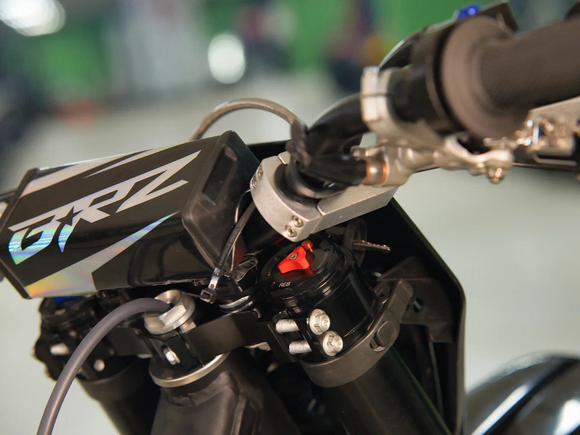 Комплектация Руль 28мм. Короткоходная ручка газа. Цепь 520. Алюминиевая литая лапка КПП, боковые накладки на рамы. Счетчик моточасов, приборная панель. Стоп сигнал, Грипсы Lock on, Защита рук Алюминиевая с пластиковыми щитками, Пластиковая защита радиатора.
