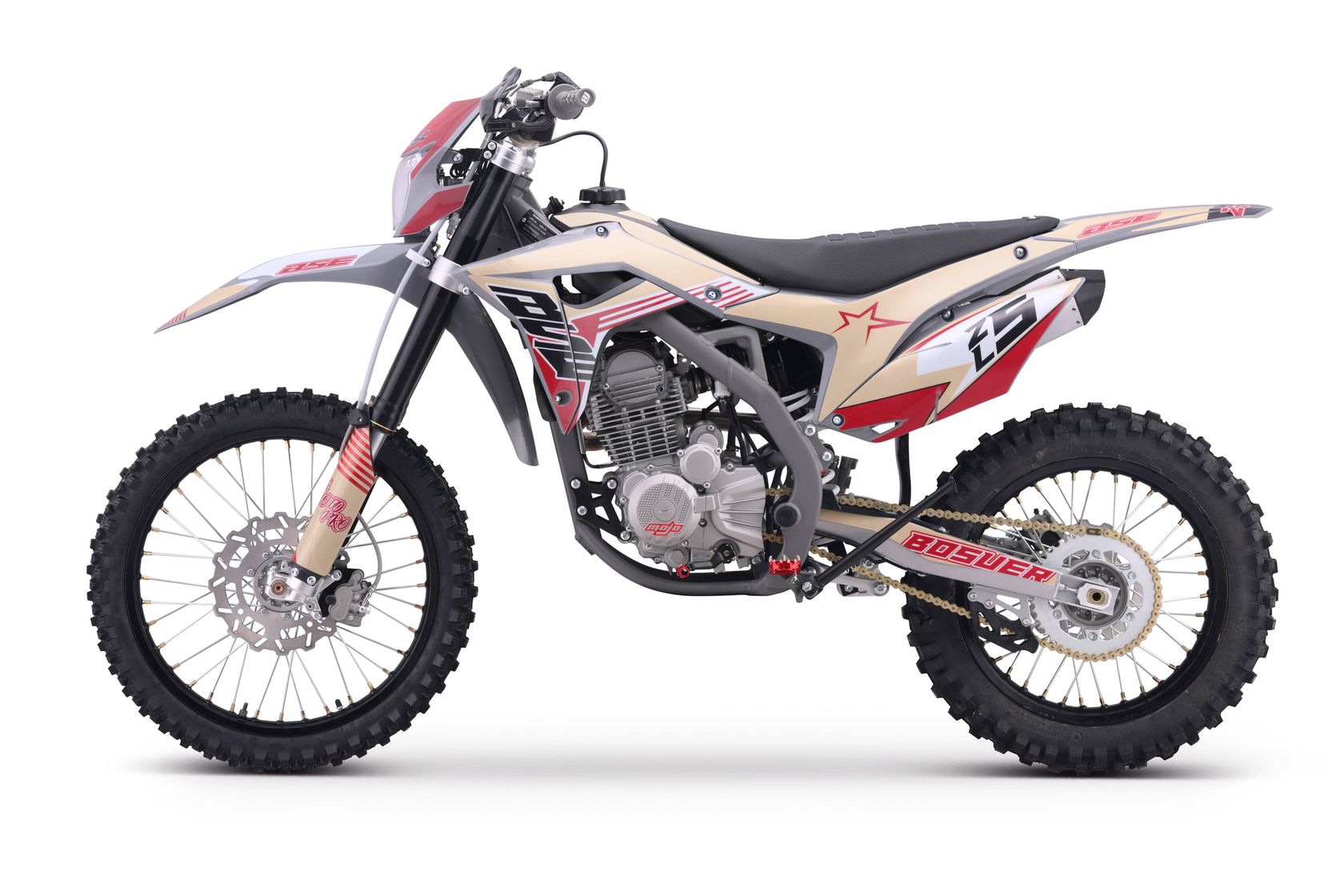 За основу мы взяли успешный полноразмерный Z5 и упростили комплектацию, чтобы сделать максимально привлекательный прайс, оставив главные компоненты — надежный 250-кубовый мотор Zonsen и усиленную стальную раму Bosuer. В итоге получили полноразмерный, функциональный и мощный эндуро мотоцикл. Идеально сбалансированный, устойчивый и готовый прощать ошибки при езде.Сердце Z5L – мощный, эластичный и надежный 250 кубовый Zonsen ZS172FMM-3A (CB250-F), 21 лс, воздушное охлаждение. Система подачи топлива – проверенный карбюратор NIBBI PWK34.Z5L уже в заводской комплектации готов к покорению серьезного бездорожья: нерегулируемая энергоемкая подвеска с большими ходами, вилка “перевертыш” и наличие рычагов задней прогрессии. Установлена “злая” внедорожная резина Carrystone. Мощная гидравлическая тормозная система HSК Racing остановит байк в любых условиях. На мотоцикле установлены: усиленные черные колёсные диски MOJO, CNC подножки c увеличенным зацепом, датчик моточасов, защита рук, грипсы и ручка газа Nibbi Racing. В фару установлена диодная лампа.Среднеразмерный Z5L подойдёт для райдеров начального и среднего уровня, которые не готовы переплачивать за более богатую комплектацию. Крепкий, надёжный и неприхотливый BSE Z5L обладает всеми качествами настоящего эндуро байка при доступной цене.