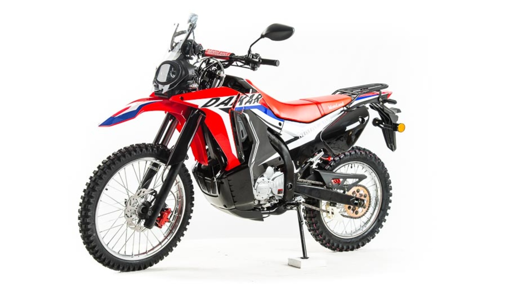 Новинка 2020 года - Мотоцикл Motoland DAKAR 250 ST.Данный мотоцикл прост в управлении и неприхотлив в обслуживании и подходит мотолюбителям Эндуро любого возраста,и опыта вождения, которым нужна техника для поездок из точки А в точку Б и обратно по дорогам и легкому бездорожью.Motoland DAKAR 250 ST оснащен одноцилиндровым четырехтактным двигателем 172FMM мощностью 21 л. с. и объемом 250 см³ с воздушным охлаждением. Установлен карбюратор PZ 30 с ускорительным насосом увеличивает скорость разгона.Для запуска двигателя можно использовать электростартер или кикстартер.Механическая трансмиссия содержит 5 передач.Мотоцикл оснащен надежными передними и задними тормозами с двух поршневыми тормозными суппортами.Колёса спицованные, размер заднего колеса — 18 дюймов, переднего — 21 дюйм. Весит 120 кг, выдерживает нагрузку до 150 кг.У нас Вы можете купить этот мотоцикл с бесплатной доставкой по РФ и гарантией до года. Также его можно приобрести в рассрочку или в кредит.