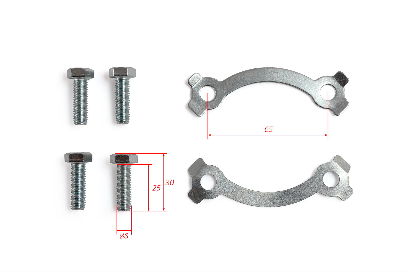 • • Болты с метрической резьбой M8, длиной 25 мм — оптимальны для большинства питбайков и лёгких мотоциклов