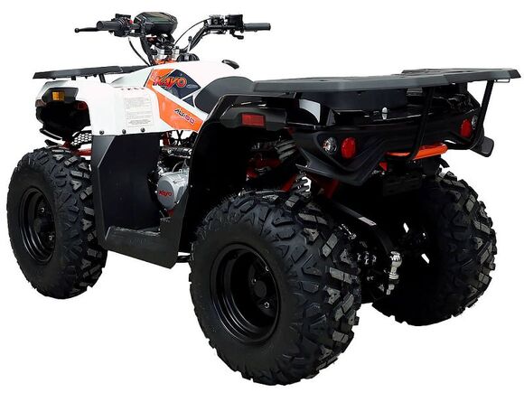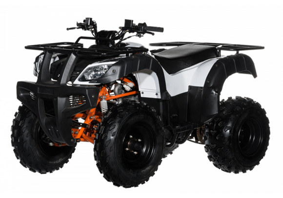 Квадрицикл KAYO AU180 – надёжный и доступный утилитарный квадроцикл с большими возможностями практического применения. Модель пользуется спросом среди широкого круга поклонников мототехники и любителей поездок по бездорожью, поскольку сочетает в себе тяговитый двигатель, энергоёмкую подвеску, отличную эргономику и агрессивный дизайн.Силовая установка представляет собой 4-тактный одноцилиндровый двигатель воздушного охлаждения объёмом 177 см3 (1P63QMK), который позволяет развивать максимальную мощность 10 л.с. Карбюраторная система подачи топлива обеспечивает бесперебойную работу техники в самых жёстких условиях эксплуатации, простоту и лёгкость в обслуживании, а также неприхотливость к качеству топлива. Для надёжной работы силового агрегата и исключения масляного голодания в нижней части картера двигателя установлен производительный масляный насос, что позволит эксплуатировать квадроцикл на склонах до 40˚ без негативных последствий для двигателя.Автоматическая трансмиссия вариаторного типа также снабжена реверсом, который особенно облегчает маневрирование в ограниченных пространствах. Привод на ведущие задние колёса осуществляется цепью. Рама квадрицикла выполнена из хром-молибденового сплава, поэтому она лёгкая, прочная и обеспечивает отличную жёсткость и защиту от повреждений. На квадрицикл установлены литые алюминиевые диски диаметром 10 дюймов, обутые в покрышки с ярко выраженным грунтозацепом (параметры шин: передняя – 10" AT23*7-10" задняя – 10" AT22*10-10").Ходовая часть квадрицикла базируется на передней независимой двухрычажной подвеске с шаровыми опорами и нерегулируемыми амортизаторами, сзади установлена маятниковая подвеска с моноамортизатором, жесткость преднатяга пружины которого можно отрегулировать. Эффективное замедление с любых скоростей обеспечивают гидравлические дисковые тормоза спереди и сзади. Аппарат обладает комплектом качественной светотехники, широкими защитными крыльями, передней и задней багажными площадками для перевозки небольших грузов, фаркопом для прицепа, а также эргономичным сиденьем и удобным рулевым управлением, что обеспечивает комфортную езду.