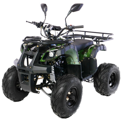 Подростковый квадроцикл MOTAX ATV Grizlik Premium подростковый квадроцикл в утилитарном дизайне, на больших 8-дюймовых колёсах с хорошими грунтозацепами. Подходит для детей и подростков от 6 до 16 лет.Квадроцикл оборудован тяговитым 4-х тактным двигателем, бесступенчатой полуавтоматической трансмиссией с одной передачей вперёд и передачей заднего хода. Также квадроцикл имеет богатую базовую комплектацию: он оборудован электрическим стартером, пультом дистанционного глушения и запуска двигателя, механическим ограничителем скорости, усиленным передним и задним багажником, комфортными гидравлическими амортизаторами, яркими передними светодиодными фарами и светодиодным задним фонарем со стоп сигналом, металлическим топливным баком, усиленной 428 приводной цепью. Передняя подвеска на независимых рычагах со съемными шаровыми опорами, что делает его очень комфортным и ремонтопригодным.