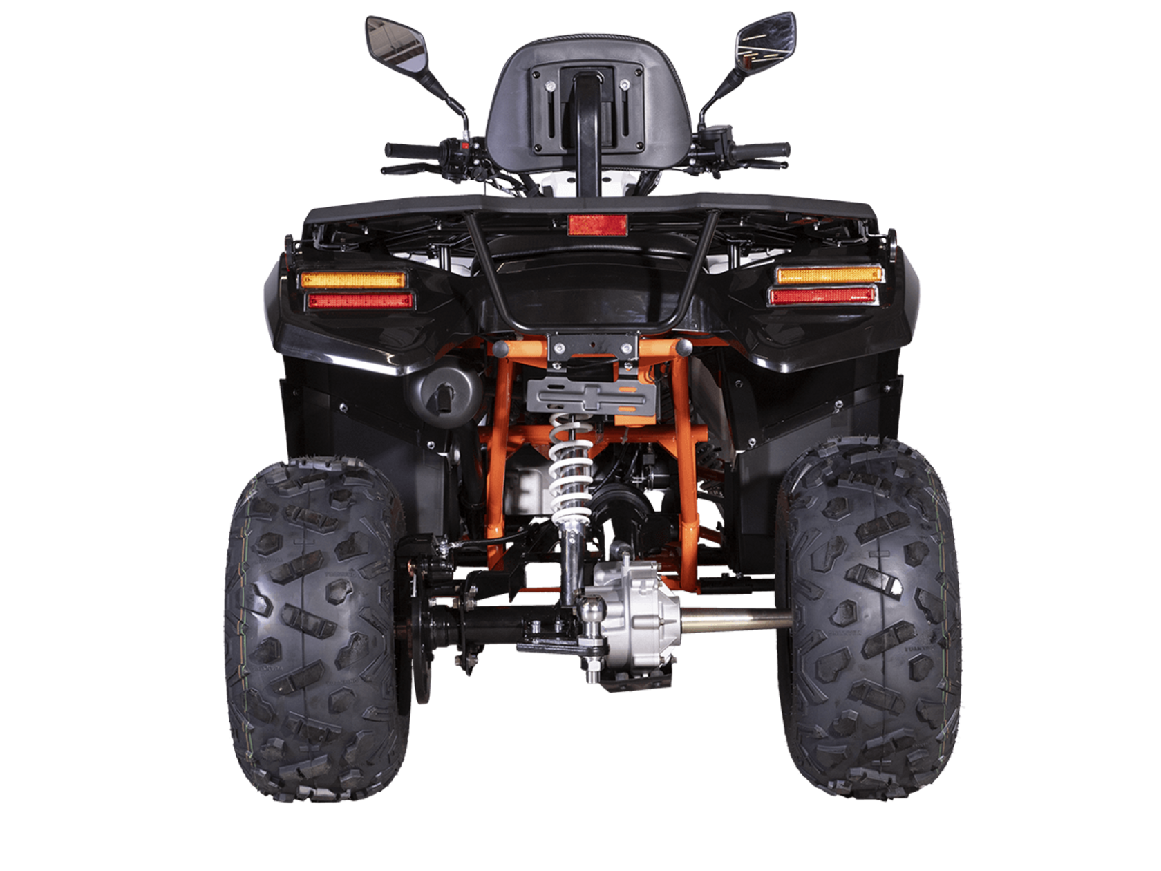 Квадрицикл KAYO AU300 Carb 2024 – отличный вариант для внедорожного экстрима с мощным двигателем, энергоёмкой подвеской и агрессивным дизайном.Квадрицикл оснащён одноцилиндровым 4-тактным двигателем LONCIN (LXCVT300) с вертикальным расположением цилиндра и жидкостным типом охлаждения. Двигатель имеет объём 271 см³ и обеспечивает мощность 23 л.с. На сегодняшний день AU300 является самым мощным утилитарным квадрициклом в модельном ряду KAYO.Карбюраторная система подачи топлива обеспечивает бесперебойную работу техники, лёгкость в обслуживании, а также неприхотливость к качеству топлива. Жидкостная система охлаждения с увеличенным радиатором не допустит перегрева мотора даже при самых жёстких условиях эксплуатации.Модель оснащена вариаторной коробкой передач со схемой L-H-N-R. Вариатор имеет понижающую передачу, незаменимую для жёсткого офф-роуда. Использование карданной передачи на заднюю ось обеспечивает непревзойдённый уровень надёжности.На квадрицикле используются колёса диаметром 10 дюймов. Энергоёмкая длинноходная подвеска позволяет адаптироваться к неровностям дороги и обеспечивает плавное и комфортное вождение на любых типах покрытий, а увеличенная ширина колеи добавляет аппарату устойчивости и проходимости. Спереди установлена независимая подвеска с двойным А-образным рычагом и длиной амортизатора 360 мм. Сзади используется маятник с длиной амортизатора 450 мм. Эффективное замедление с любых скоростей обеспечивают гидравлические дисковые тормоза спереди и сзади.Рама квадрицикла выполнена из хроммолибденового сплава – лёгкого и прочного материала, обеспечивающего отличную жёсткость и защиту от повреждений. Уровень безопасности повышает штатный датчик присутствия. На квадрицикле имеются передний и задний багажники, а также установлен фаркоп с розеткой для подключения прицепа. Благодаря наличию ПТС квадрицикл можно поставить на учёт, чтобы ездить по дорогам общего пользования. Ёмкость топливного бака 12 литров.Габариты 1900х1020х1010 мм, вес 300 кг. Колёсная база 1230 мм, высота по седлу 830 мм.