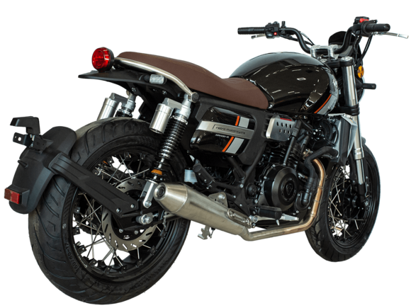 CYCLONE RE401 (SR400-B) 2024 – классик, в котором подчёркнутая простота объединяется с современными технологиями. Данная модель является более продвинутой версией модели RE3 (SR-400) – мотоцикл обладает более современным дизайном, снабжён стильными металлическими накладками на радиатор, а также топливным баком, объём которого увеличен до 20 литров.Двухцилиндровый четырёхтактный двигатель объёмом 401 см3 выдаёт 43 л.с. на 9500 об/мин. Инжекторный впрыск топлива с инжектором BOSCH увеличивает топливную экономичность, а также позволяет добиться высокой приёмистости и неприхотливости агрегата. Жидкостная система охлаждения не допустит перегрева двигателя даже при самом агрессивном вождении. На мотоцикл установлена 6-ступенчатая механическая коробка передач.Максимальная скорость мотоцикла составляет 150 км/ч.RE401 оснащён классическими спицованными колёсами диаметром 17 дюймов. Колёса обуты в бескамерные покрышки TIMSUN. С неровностями дороги эффективно справляются телескопическая вилка перевёрнутого типа спереди и маятник с двумя амортизаторами сзади. Ход передней подвески составляет 130 мм, задней – 81 мм. Оба компонента подвески являются регулируемыми. Эффективное и безопасное замедление с любых скоростей обеспечивают гидравлические дисковые тормоза с ABS спереди и сзади.Клиренс мотоцикла составляет 170 мм. Объём топливного бака – 20 л. Снаряжённая масса – 186 кг.Из дополнительного оборудования можно выделить USB-порт и датчики давления в шинах.Мотоцикл сочетает в себе отличные технические характеристики, комфорт и надёжность, что позволяет вам ощутить настоящую свободу на любой дороге.