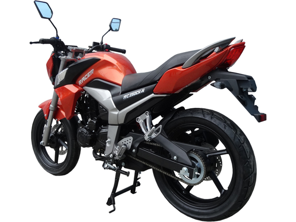 Мотоцикл Racer RC300CK-N Fighter - дорожный мотоцикл, в первую очередь ориентированный на начинающих байкеров. Отличается легкостью в управлении и сравнительно доступной ценой. 270-ти кубовый двигатель выдает 20 л.с. мощности, чего более чем достаточно для маневрирования в городских пробках. Мотоцикл получил новую 5-ти ступенчатую коробку передач, благодаря которой он стал более резвым и динамичным. Моноамортизатор обеспечивает необходимую жесткость задней подвески. Средней жесткости надежная передняя телескопическая вилка.Торможение контролируемо и эффективно благодаря двухпоршневому суппорту дискового тормоза. Посадка удобна, а электронная панель приборов с индикатором включенной передачи легко читается. Оптика выполнена из ударопрочного пластика, а задний фонарь имеет яркие LED светодиоды. Вместительный топливный бак обеспечивает хороший запас хода.