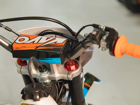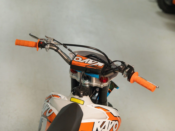 Мотоцикл KAYO K1 250 MX – “народная” версия внедорожного мотоцикла от компании KAYO. Идеальный снаряд для внедорожного экстрима, представляющий собой оптимальный баланс производительности и технической оснащённости, поэтому он идеально подходит как новичкам, так и опытным райдерам. Удобный, простой и надёжный мотоцикл, который полностью оправдывает свою цену.Мотоцикл оснащён одноцилиндровым 4-тактным двигателем воздушного охлаждения (ZONGSHEN ZS172FMM) объёмом 249 см3, который обеспечивает высокую мощность (21 л.с.) и крутящий момент, что позволяет развивать большую скорость и с лёгкостью преодолевать трассы со сложным рельефом. Карбюраторная система подачи топлива с карбюратором NIBBI PE30 обеспечивает бесперебойную работу техники в самых жёстких условиях эксплуатации, простоту и лёгкость в обслуживании, а также неприхотливость к качеству топлива. Аппарат оснащён 5-ступенчатой механической коробкой передач с классической схемой “1-N-2-3-4-5”.Усиленная рама из хром-молибденового сплава и подвеска позволяют эффективно амортизировать удары при езде по неровностям и препятствиям на трассе. Передняя подвеска телескопическая вилка перевёрнутого типа от фирмы KKE длиной 800 мм, задняя — нерегулируемый моноамортизатор 360 мм, рассчитанный на высокие нагрузки до 900 LBS, также произведённый компанией KKE. Мотоцикл оснащён классическими спицованными колёсами диаметром 18 и 21 дюйм. Колёса имеют усиленные обода из алюминиевого сплава и буксаторы. Эффективное и безопасное замедление с любых скоростей обеспечивают гидравлические дисковые тормоза.Мотоцикл достаточно компактен и имеет вес всего в 105 кг, поэтому он комфортен в эксплуатации одновременно и для мужчин среднего телосложения, и для девушек. Аппарат оснащён системой запуска двигателя при помощи кнопки электростартера или при помощи рычага кик-стартера.Высококачественная износостойкая резина с развитым протектором отлично держит дорогу на различных типах покрытия и в самых разных поворотах. Сиденье эргономичной формы покрыто антискользящим материалом.K1 250 MX сочетает в себе отличные технические характеристики, комфорт и надёжность, что позволяет вам ощутить настоящую свободу на любой трассе.