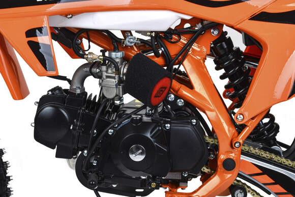 Хорошо чувствует себя на мягком и среднем грунте, разгоняется до 90 км/ч.Питбайк прост в управлении и не требует специального ухода, подойдёт как новичкам, так и любителям мотокросса.Комбинированный прочный пластик не ломается при сгибании.Передняя подвеска — телескопическая вилка перевёрнутого типа, которая отлично подходит для преодоления ям, и других неровностей. Задняя подвеска маятниковая с моноамортизатором.Питбайк оснащён: