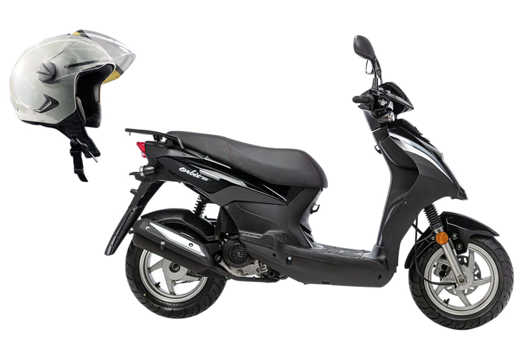 Главная ... Скутеры SYM Скутер SYM Orbit 50 Черный + мотошлем SYM серый