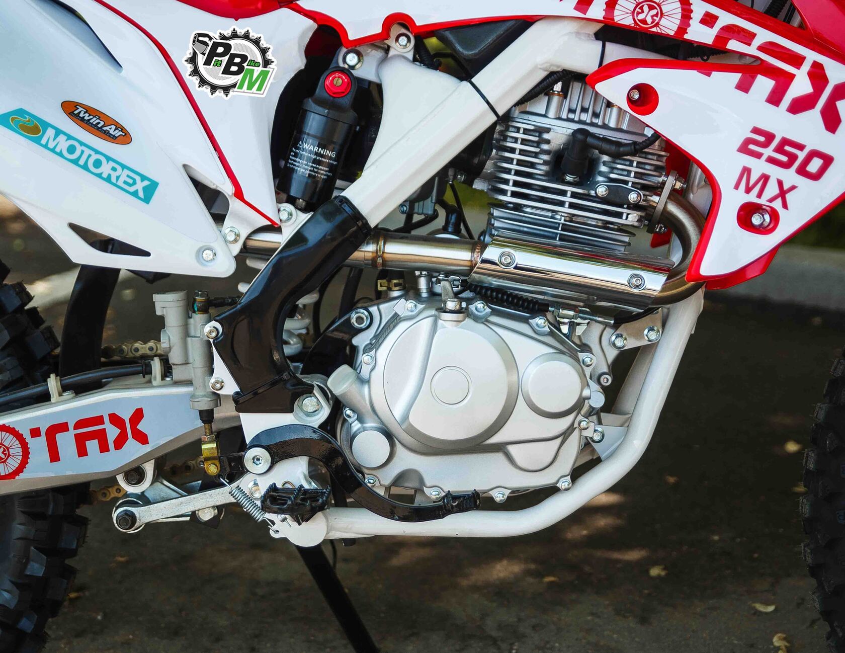 Мотоцикл Motax MX 250 это новинка весны 2021 года Надёжная техника из самых популярных компонентов оснащена Двигателем ZONGSHEN 165FMM с кикстартером и электростартером Мощностью 16 Л.С. на двигателе установлен Карбюратор NIBBI PE28.Это полноразмерный кроссовый мотоцикл. Что позволяет комфортно себя чувствовать райдерам разного роста.За счет сбалансированной базы мотоцикл имеет отличную управляемость, а конструкция рамы и особенности настройки подвески способствуют максимальному поглощению неровностей дорожного покрытия, а так же усиленная прогрессия на игольчатых подшипниках.Алюминиевые обода c буксаторами, усиленными спицами и ступицами. На кроссовой резине Yuanxing 80/100-21 / 100/90-18На мотоцикле установлена обновлённая тормозная система аналог «brembo» с медными колодками , что обеспечивает отличные тормозные характеристики. Особенностью заднего тормоза является, лапка верхнего расположения с эксцентриковой регулировкой.Выпускной патрубок имеет крепления на пружинах для снижения вибрации. Глушитель с уникальным дизайном прямоточного типа, полностью алюминиевый для облегчения веса.
